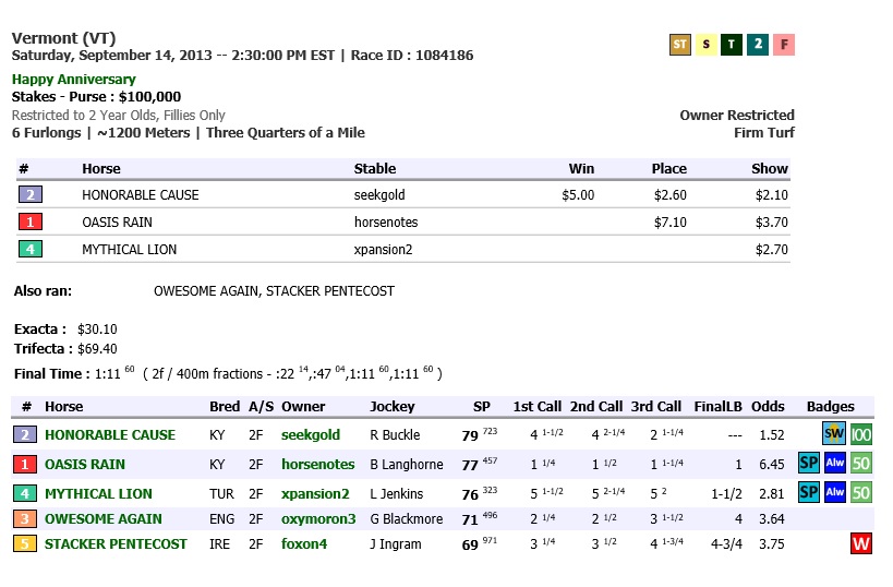 RACE RESULTS